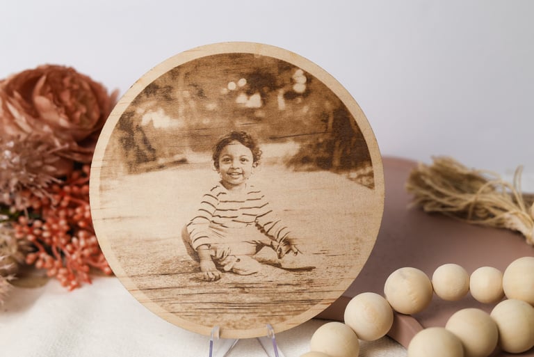 Curated Collection: Choose from a variety of pre-designed keepsakes, including ornaments, photo frames, and wooden boxes.